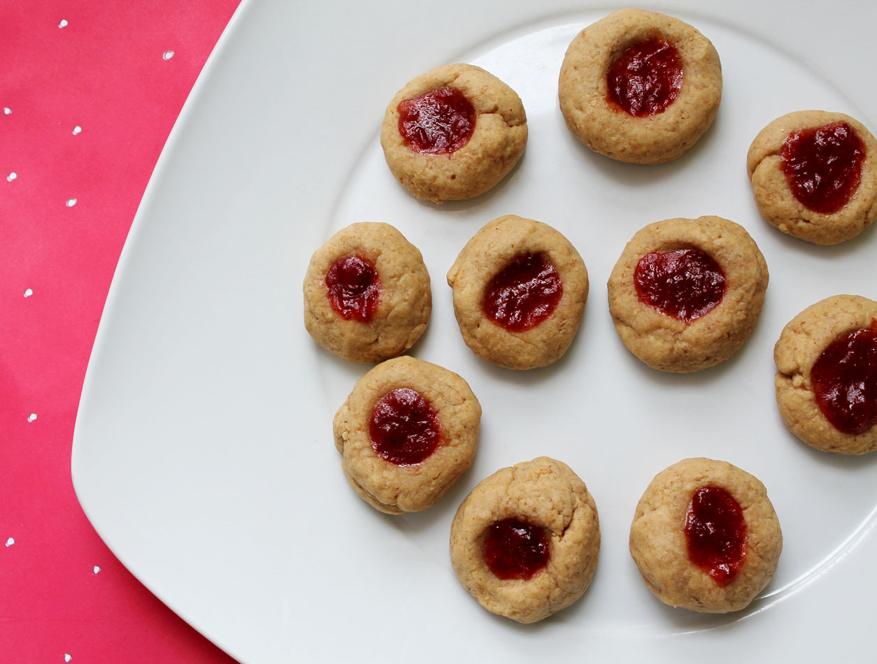13. Mini Peanut Butter and Jam Thumbprint Cookies