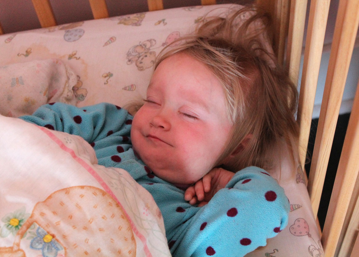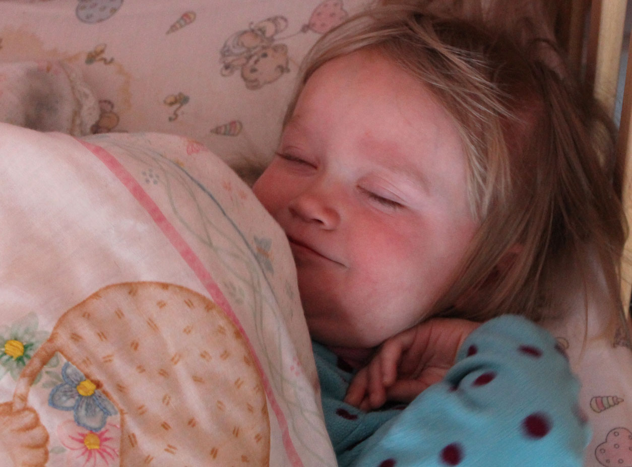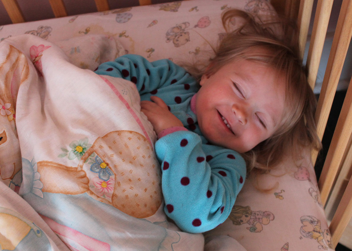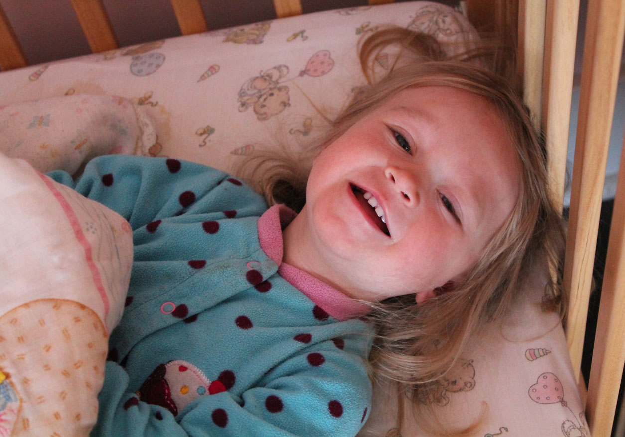 Every night at bedtime there are crocodile tears, tight arms around my neck and a bittersweet parting, but in the morning is this sweet, happy face as I return and say “Good morning.”