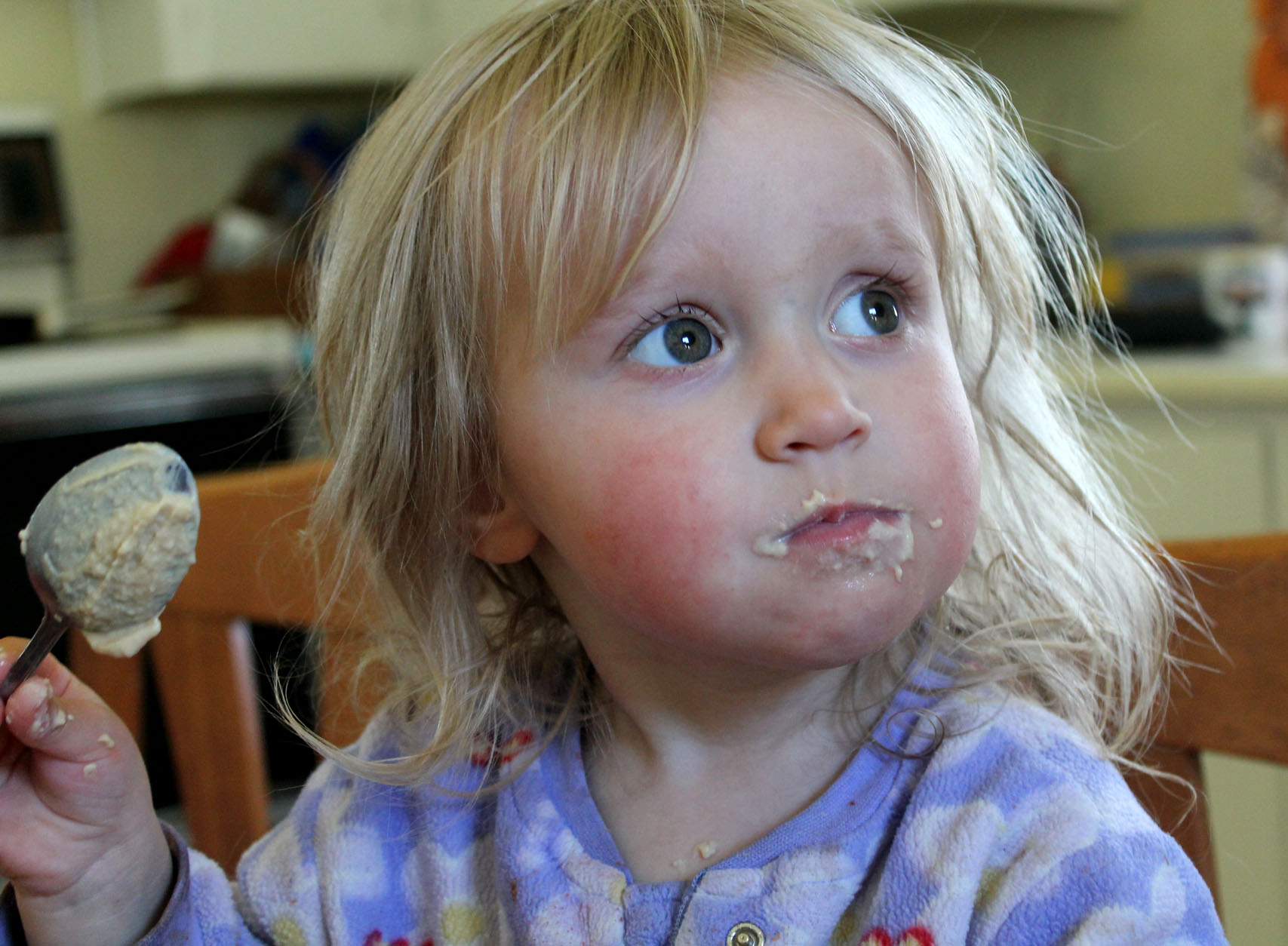 ~ For hungry little babies who love healthy foods. She is no longer the peanut butter baby, but the hummus baby. She also can’t get enough of puffed wheat cereal, cucumbers and applesauce.
