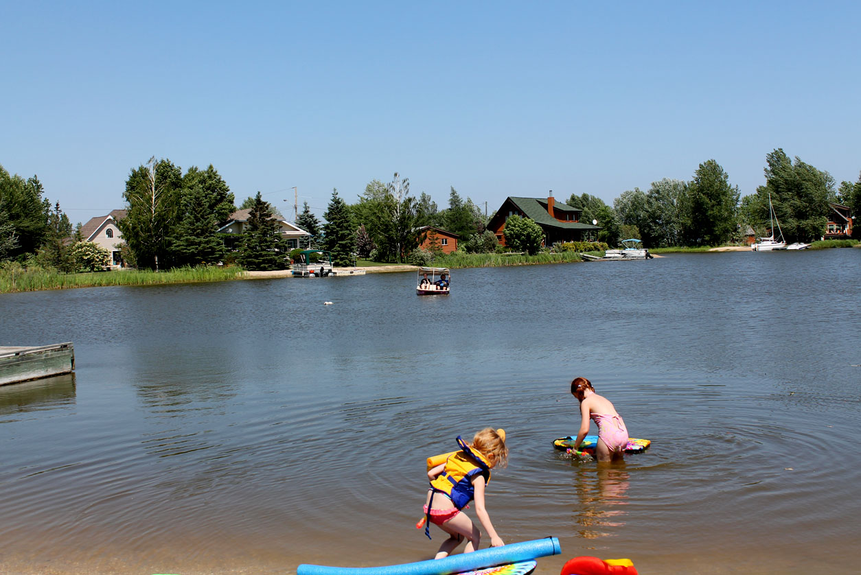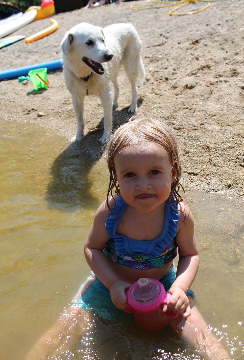 It has still been mostly hot and humid around here and so we have still been spending most of our time at the beach. The summer goes by so quickly that I’ve been wanting to enjoy every minute of it before it’s back to winter boots, hats and mitts. The best place to be when it is hot is still my parents place, AKA “Grandma’s beach.” The girls could swim around there for hours and hours. It is also nice to see family and our sweet beach dog Mo who loves the water too. He even follows the pedal boat out in the lake.