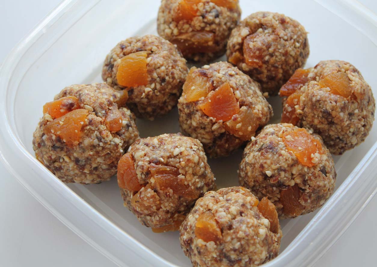 • It is a new recipe I came up with the other day. I will have to take down the actual measurements of the ingredients and post it sometime. It was ground raw almonds, oats and medjool dates, peanut butter a tablespoon of syrup and chopped apricots. Autumn and I were being creative and inventing a healthy snack one afternoon. 🙂