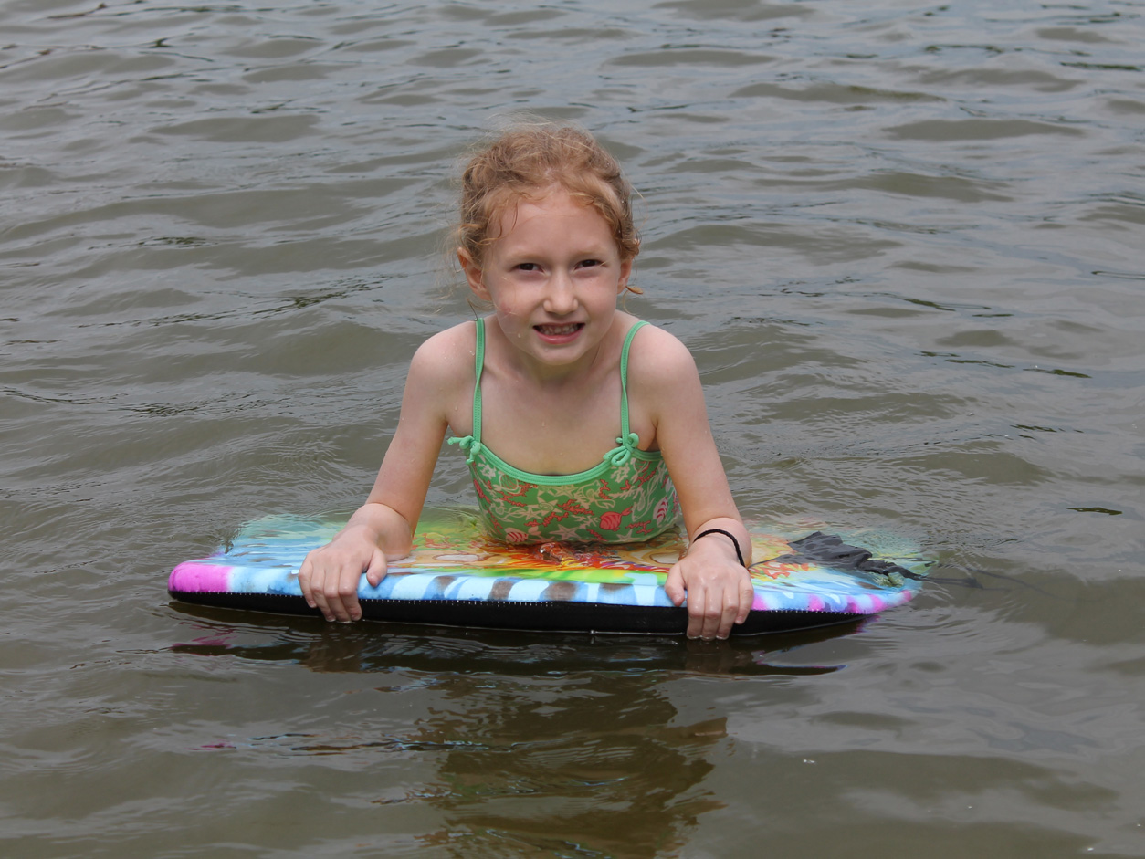 Serafina of course got naked right away, but then we got her to keep a swimsuit on. She also got to practice her surfing techniques. We didn’t know she was a surfer! 🙂