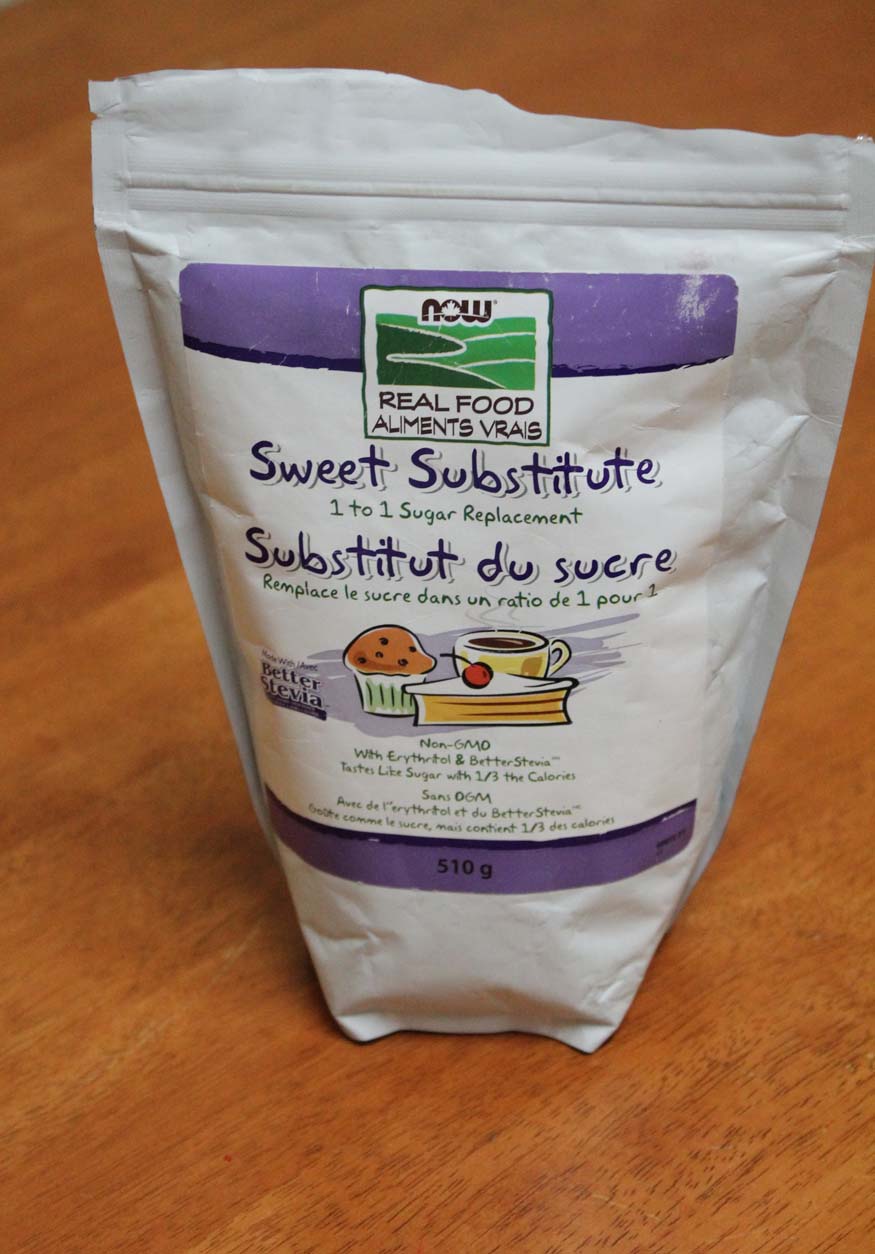 This Now Real Food Sweet Substitute is made with erythritol and stevia and contains no GMO ingredients. It replaces sugar 1 to 1 in a recipe.