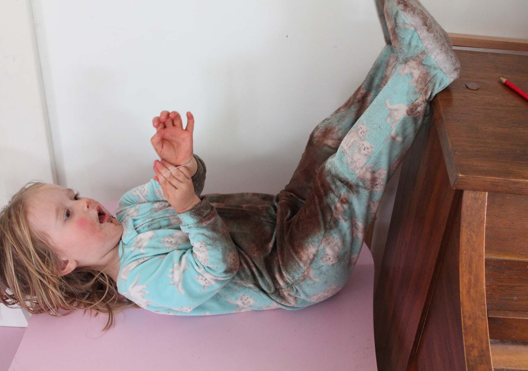 These days Serafina is a real trouble maker. Well, let’s just say she is very curious and into the world and everything in it. Her developmental level is probably around that of an 18 month old right now. She loves to climb and get into everything. She loves to dump everything; cereal, coffee grounds, noodles, berries, margarine. And rip everything too, pictures, papers, tea bags. Everything I say! And she also loves to put everything in her mouth, from soap to toothpaste to cat litter and even poop. That’s right, I said poop. In her mouth. Yea… that’s what happens if we are not constantly on guard. Like the other day when I tried to check my email. Silly me.