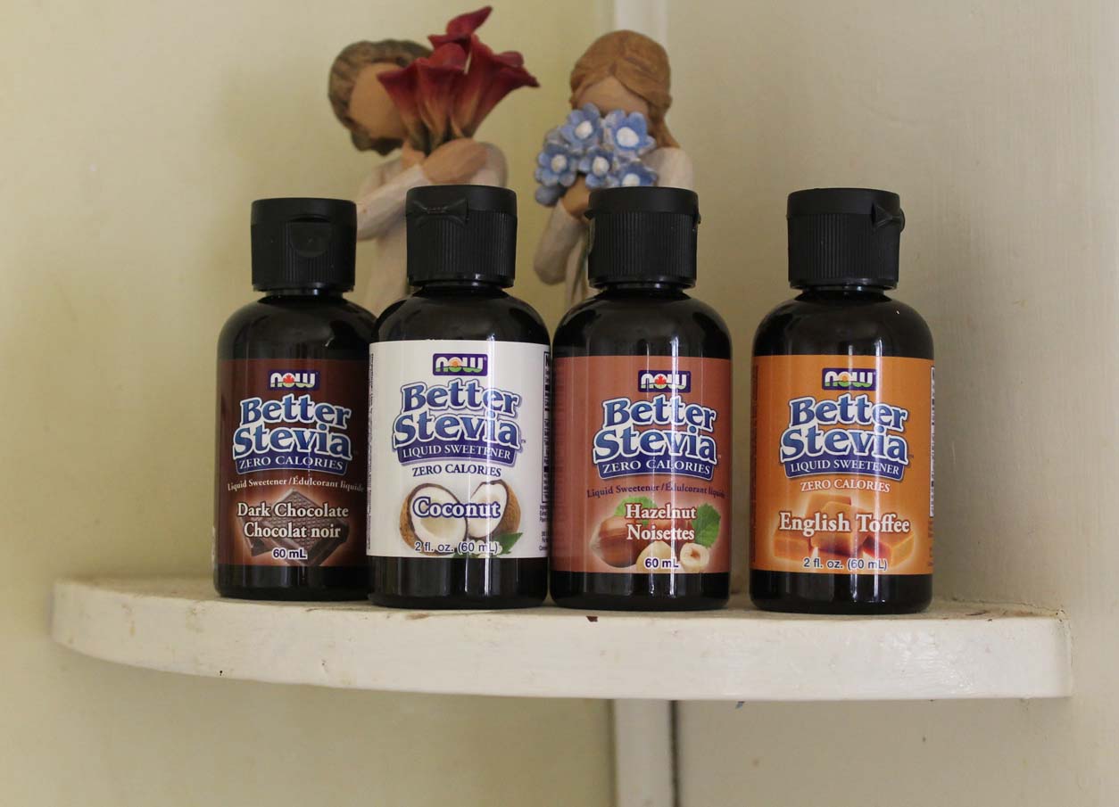 Liquid stevia is great as a sweetener for coffee or tea, or for use in recipes. Stevia has zero calories and is a natural sweetener alternative to sugar or honey. You can also add it to banana ice cream or plain yogurt. I like to use English Toffee or Dark Chocolate stevia in coffee. The coconut one is great in fruity herbal tea or with carbonated water and fresh-squeezed lemon or lime juice for a tropical-feeling beverage. My only problem with liquid stevia is that it has alcohol in it and you can taste it. I like to buy the alcohol-free original one and use it moderately in recipes or beverages from time to time.