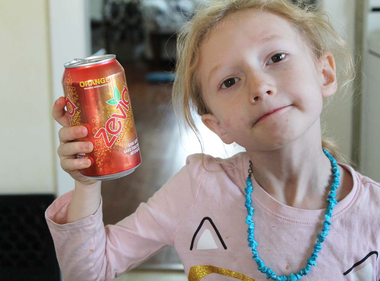 Zevia is a soda that is sweetened with erythritol and stevia and has natural flavors. It has zero calories and no refined sugar. Most of them are also color-free and clear, except for Cream Soda, Ginger Root Beer, Cola, and Ginger Ale, which have a caramel color to them. I love Zevia and we buy it every time we do our big grocery shop in the city (every 2-4 weeks). Our favorite flavors are Orange, Grape, Caffeine-Free Cola, Ginger Root Beer, and Ginger Ale. I never really was a fan of soda pop before, but these guilt-free sodas are delicious and I feel good about our girls drinking them too. They do have citric acid in them and that can wear away tooth enamel for those who have sensitive, or thinning teeth. That is the only problem I can see with them.