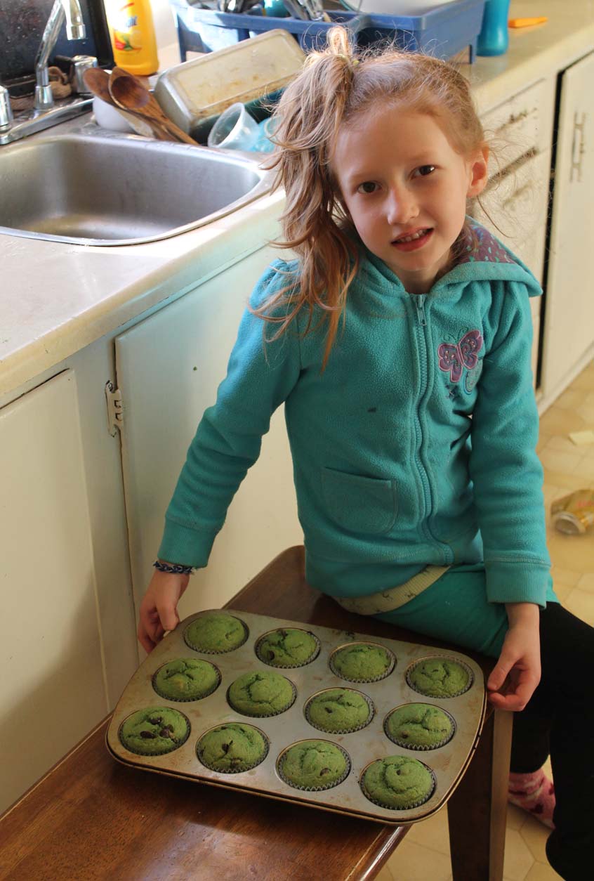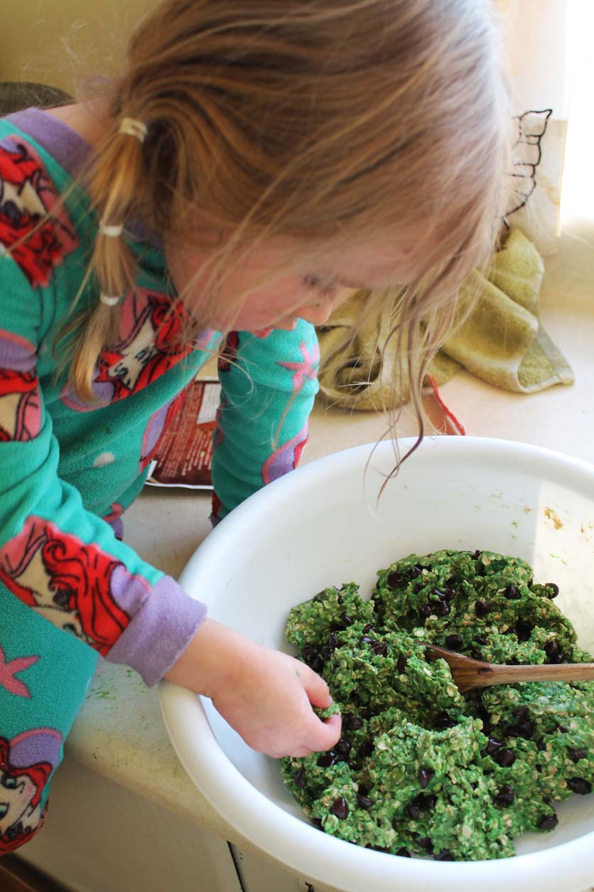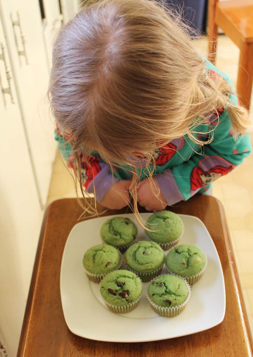 I thought that chocolate mint would be great for Saint Patrick’s day and it was! We made both Oatmeal Mint Chocolate Chip Cookies and Mint Chocolate Chip Muffins. We added a bit of natural green food coloring to the recipes to tint them green and add to the Saint Patrick’s Day theme.