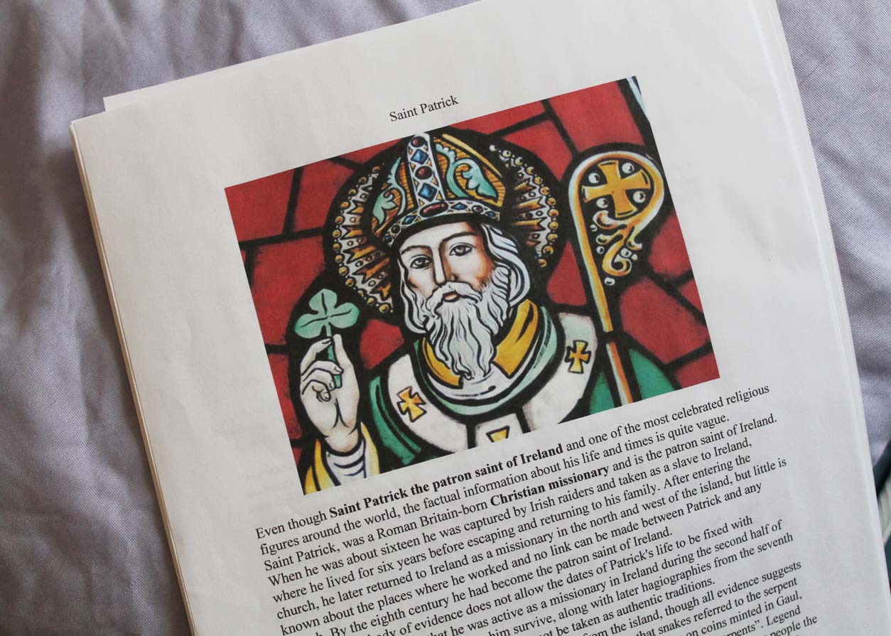 This Saint Patrick’s day we read the story of Saint Patrick, of how he gave hope to Ireland after receiving a vision from angels and taught the people about the trinity using the shamrock as symbolic representation of the Father, the Son, and the Holy Spirit. I also decided to do something fun together to celebrate. We had a picnic dinner outside together and then baked some cookies and muffins in the evening.