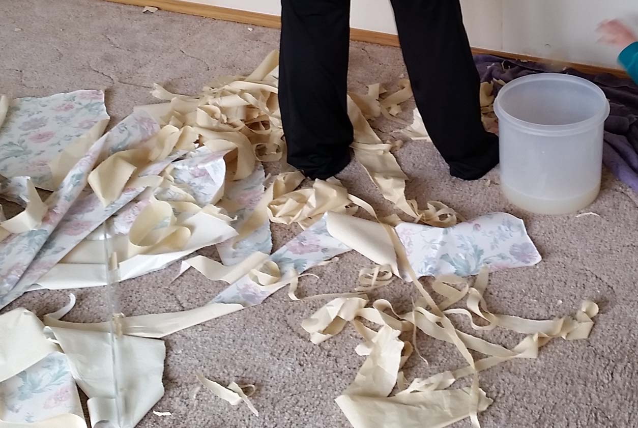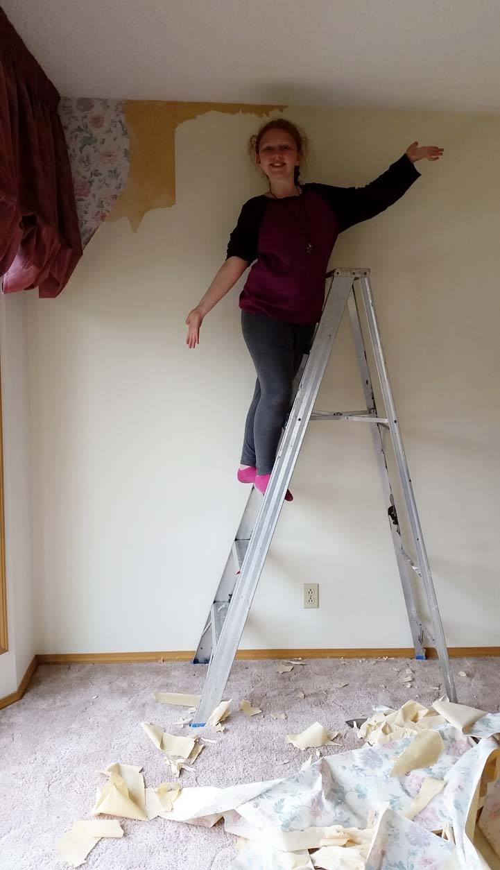 The hallway, master bedroom, and Serafina’s room also had wallpaper to peel as well. We were lucky that the home owner allowed us to take it all off and go ahead and paint to make it more homey.