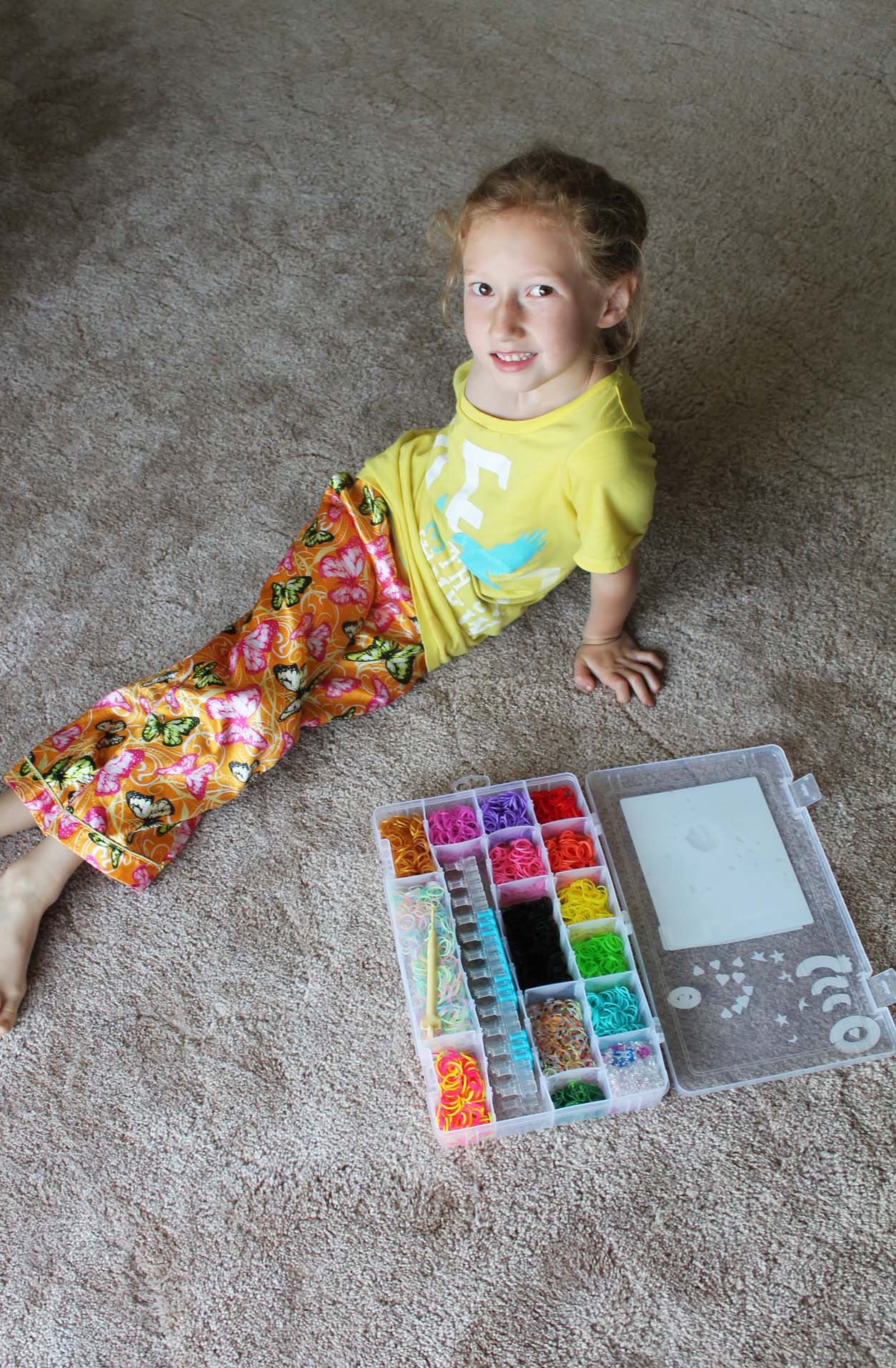 She was happy to have her rainbow loom case well-stocked on her birthday morning, thanks to big sister Autumn’s gifts.