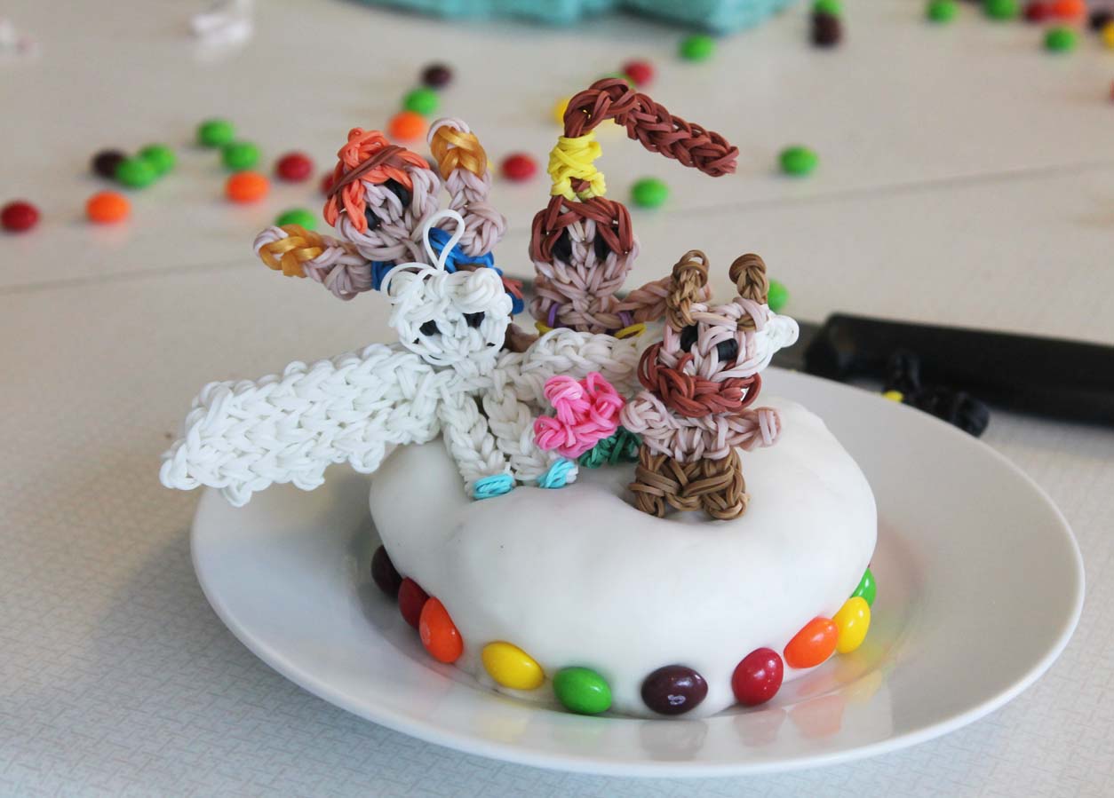 With the middle part of the cake the girls also made a mini cake and topped it with Hercules Rainbow Loom figures that they made. Kesa loves Hercules and so she made her party a Hercules-themed party. They made all of their own decorations too.
